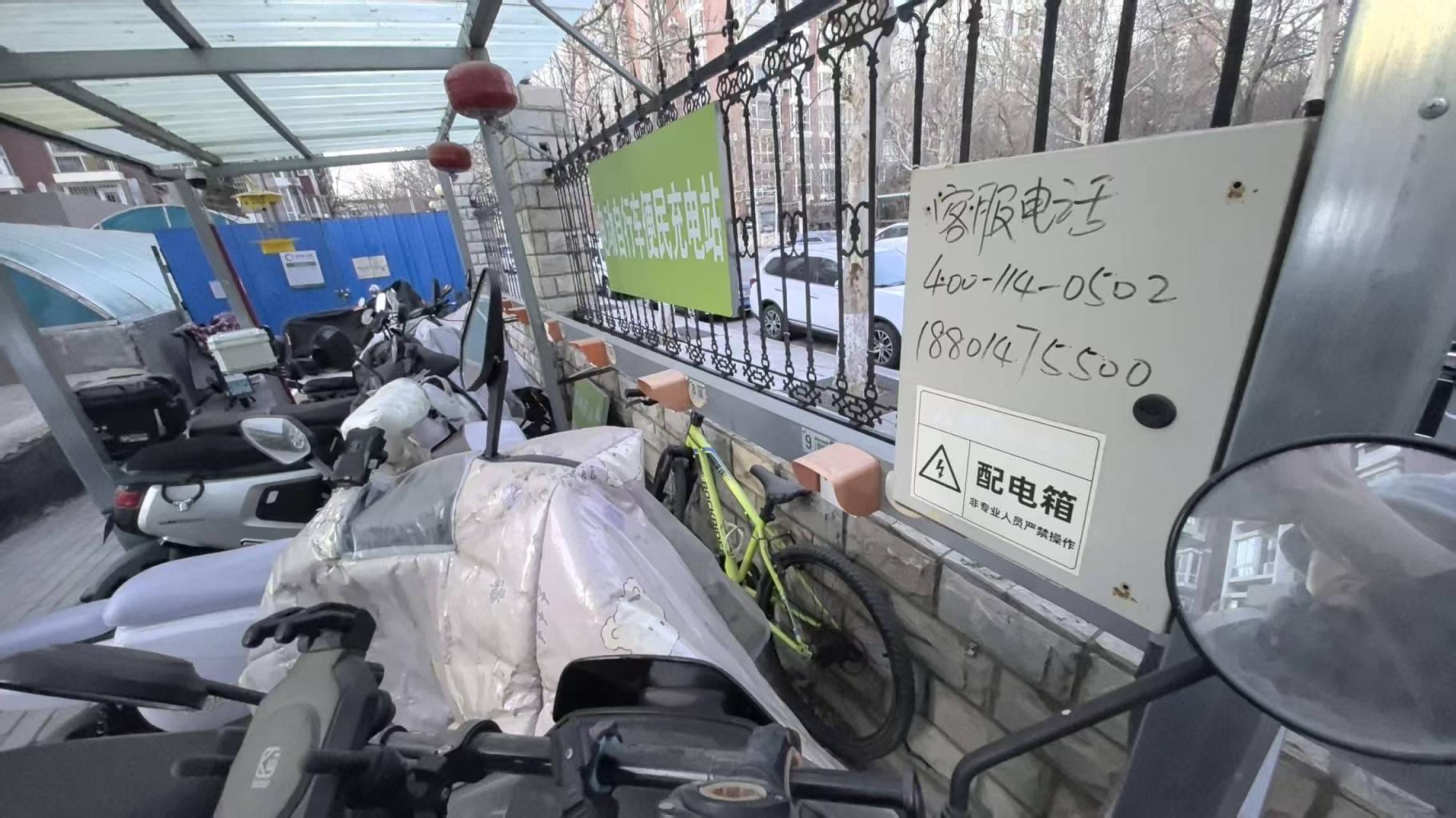 继续前行右转,记者来到位于小区中心另一处便民充电站,只见该处充电站内多辆电动车罩着车衣,东倒西歪地挡在充电口前。其中一辆尤为显眼,车头外罩着厚厚的车衣,车衣上落满尘土,车筐内塞着废旧塑料袋、揉成团的废纸等杂物,车轮也多处锈蚀,显然已很久未用。一位居民说,这辆僵尸车已在此停放3个多月,“独占一个充电位,也没见车主前来挪过车,我几次都想把它推到外面去,又怕被车主撞见引发争执,心里别提多憋屈了。”